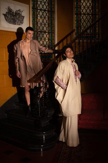 Inspirado en el suceso histórico, "el baile de los 41 y tomándolo como punto de partida para esta colección, busco hacer una yuxtaposición de elementos a partir de los textiles, siluetas y códigos socialmente asociados a la indumentaria femenina, con aquellos socialmente asociados